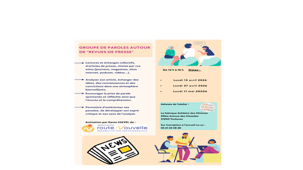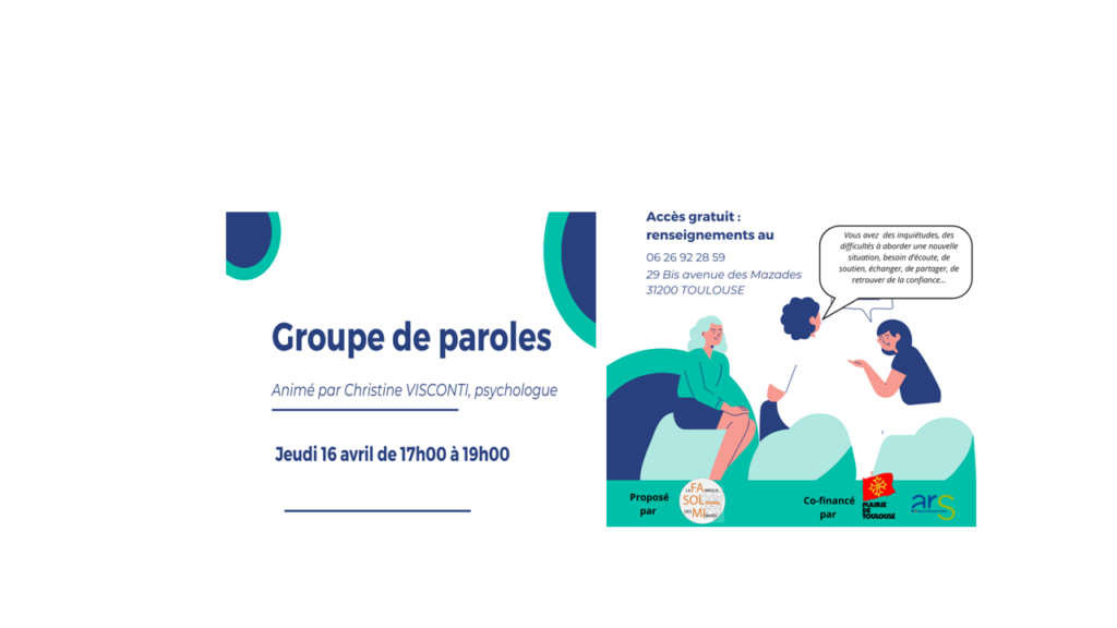Le prochain Groupe de paroles aura lieu le jeudi 16 avril. Vous souhaitez le rejoindre ?! N’hésitez pas à nous contacter pour tout renseignements et inscription !