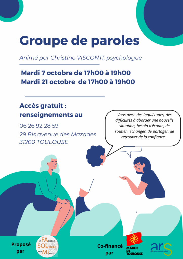 Besoin d’échanger, de partager, d’écoute ? C’est lors du Groupe de paroles du mardi 7 octobre dès 17h