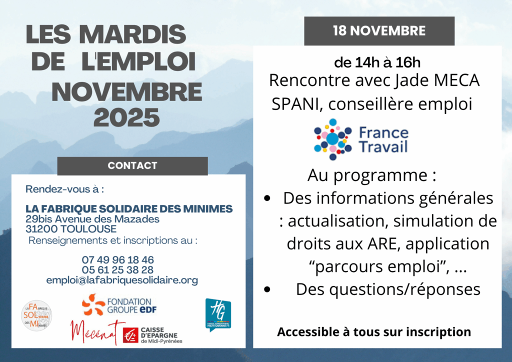 L’après-midi du 18 novembre dès 14h on se retrouve lors des Mardis de l’emploi, pour rencontrer Jade MECA SPANI, conseillère emploi à France Travail ! Ne tardez pas à vous inscrire !