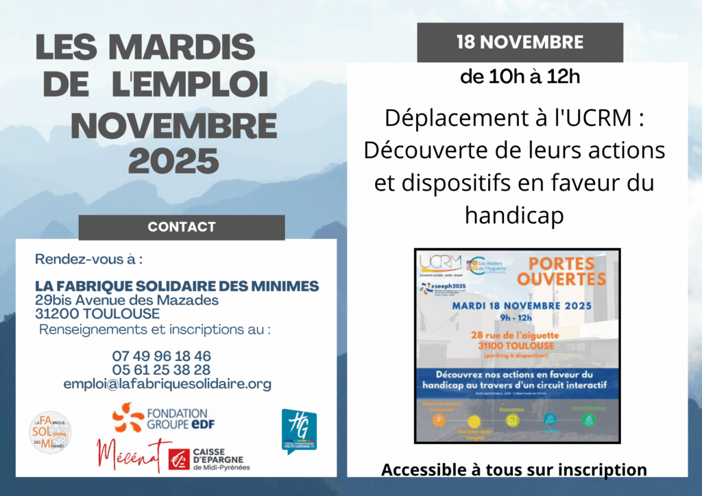 Le 18 novembre matin, les Mardis de l’emploi se déplace à l’UCRM pour découvrir leurs actions et dispositifs en faveur du handicap. Inscrivez vous vite !