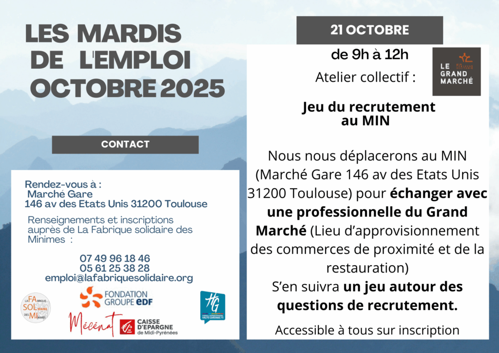 Accueil / Actualités / Ateliers / Le 21 octobre, les Mardis de l’emploi au MIN pour répondre à vos questions sur le recrutement ! Inscrivez vous vite !