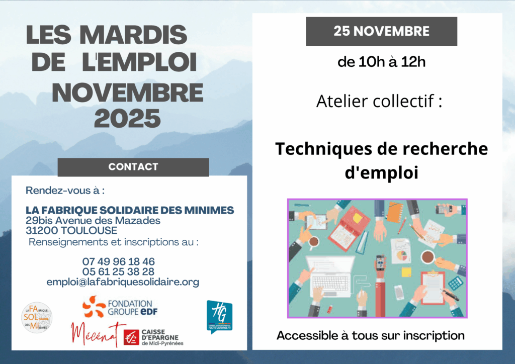 Le 25 novembre, les Mardis de l’emploi vous propose un atelier sur les techniques de recherche d’emploi. Inscrivez vous vite !
