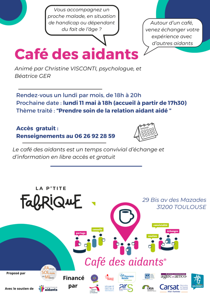 Le lundi 11 mai, le Café des aidants vous attend pour échanger sur le thème « Prendre soin de la relation aidant aidé ».