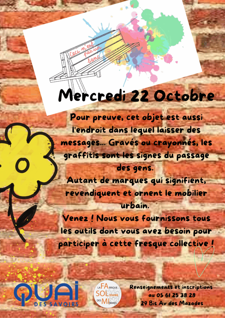 Accueil / Actualités / Activités culturelles et de loisirs / Le mercredi 22 octobre : Changeons notre regard sur le graffiti ! Exprimez vous lors de cet atelier participatif <3