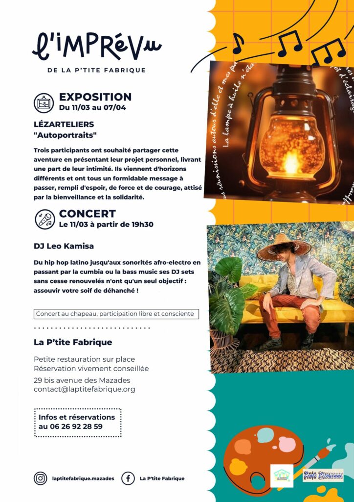 Accueil / Actualités / Évènements / Nouvelle exposition suivi d’un concert !! C’est le programme de l’Imprévu du 11 mars. Nous vous attendons nombreux !