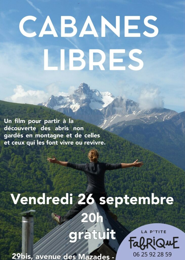 Vendredi 26 septembre, nous vous attendons nombreux pour la projection gratuite du film « Cabanes libres ».